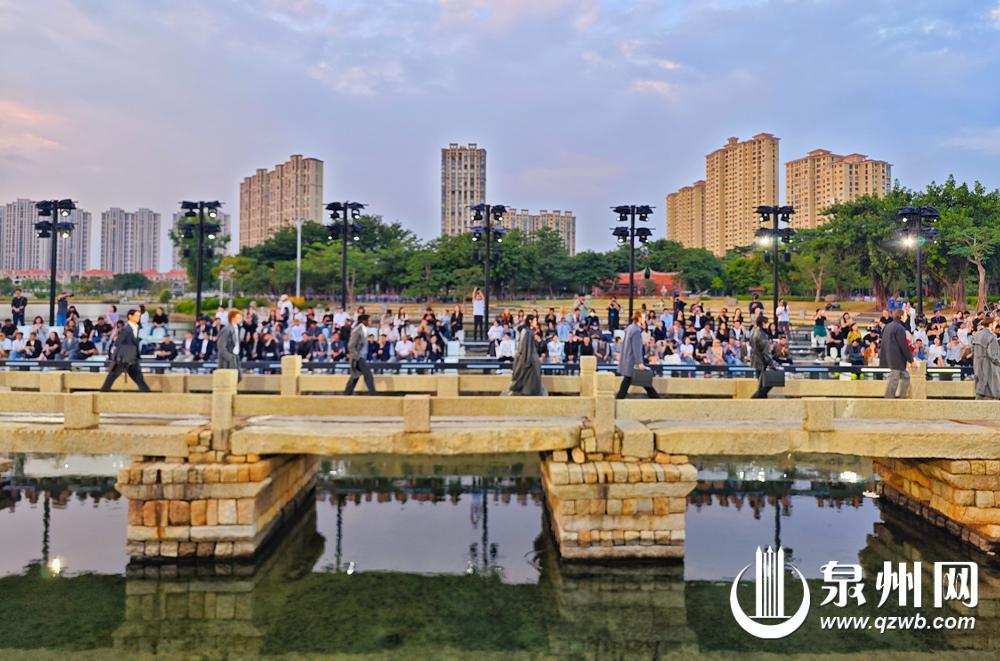 暮色中,古老的安平桥化身时尚T台,说唱歌手携手国内外模特,身着利郎安平桥系列男装,上演一场世界遗产与现代时尚相互碰撞、交相辉映的精彩走秀,成为晋江“世遗+国潮”文化品牌活化利用的生动案例,也为泉州打造世界遗产保护利用典范城市贡献“晋江智慧”。