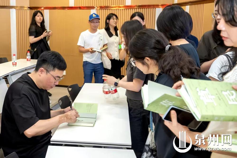 蔡崇达携作品《草民》回乡,在晋江文体旅服务中心为读者亲笔签名。