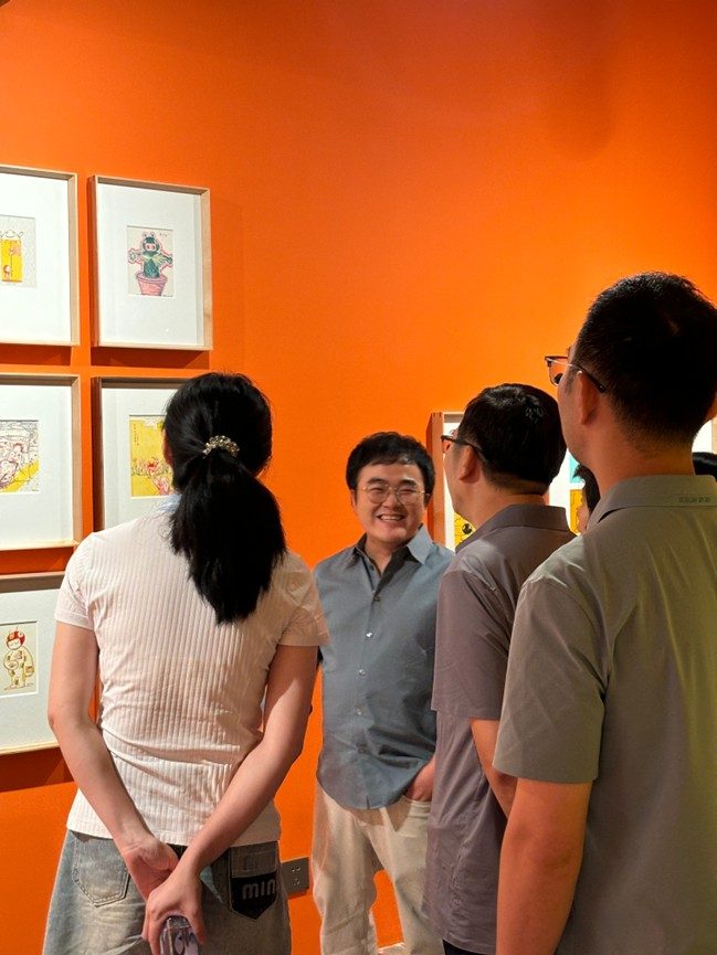 作为盒止美术馆(公益美术馆)馆长,洪锽淮正在导览他的个展“亲爱的小H·亲爱的生活”