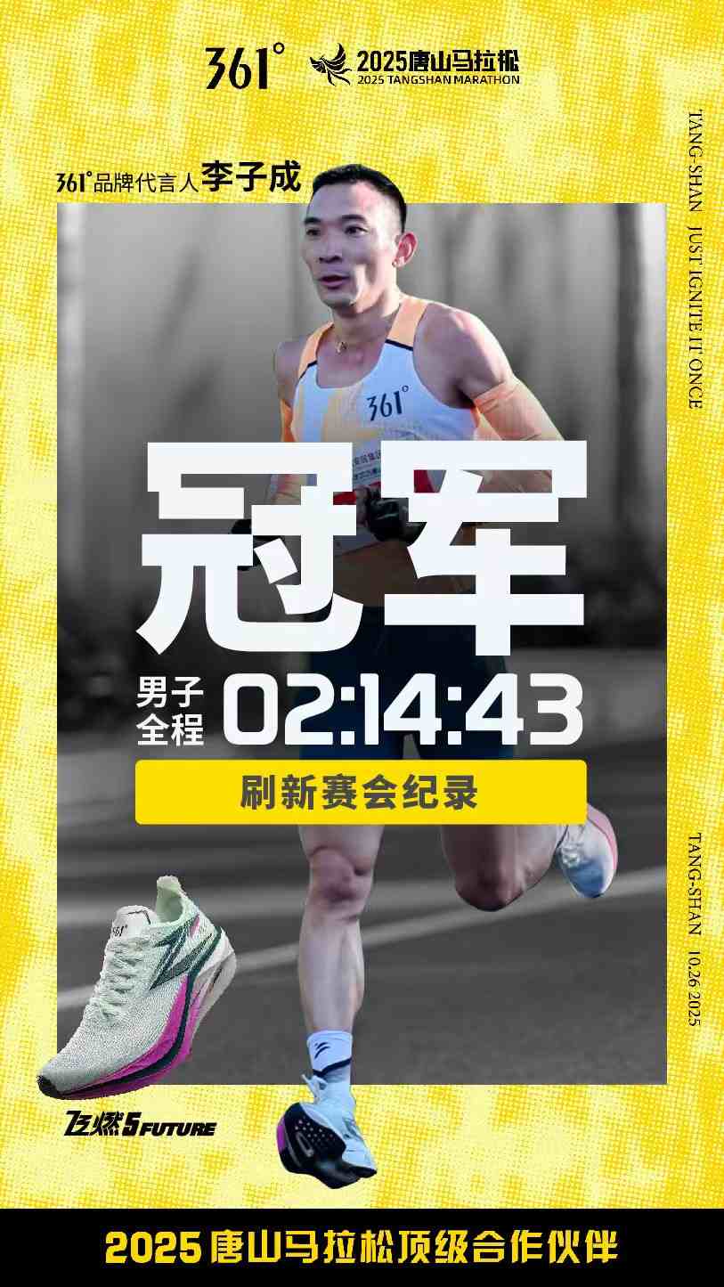 10月26日,2025唐山马拉松正式鸣枪开跑。作为中国田协A1类金牌赛事,本届唐马吸引万余名跑者齐聚唐山,以奔跑致敬城市精神。中国领先的体育用品品牌361°作为赛事顶级合作伙伴,以专业装备与全方位服务为赛事保驾护航,其代言人与精英跑者表现卓越,一举包揽全程与半程马拉松的男、女子组四项冠军。品牌代言人李子成更是以02:14:43的成绩刷新男子赛事纪录,充分彰显361°在马拉松领域的科技实力与战略深耕。