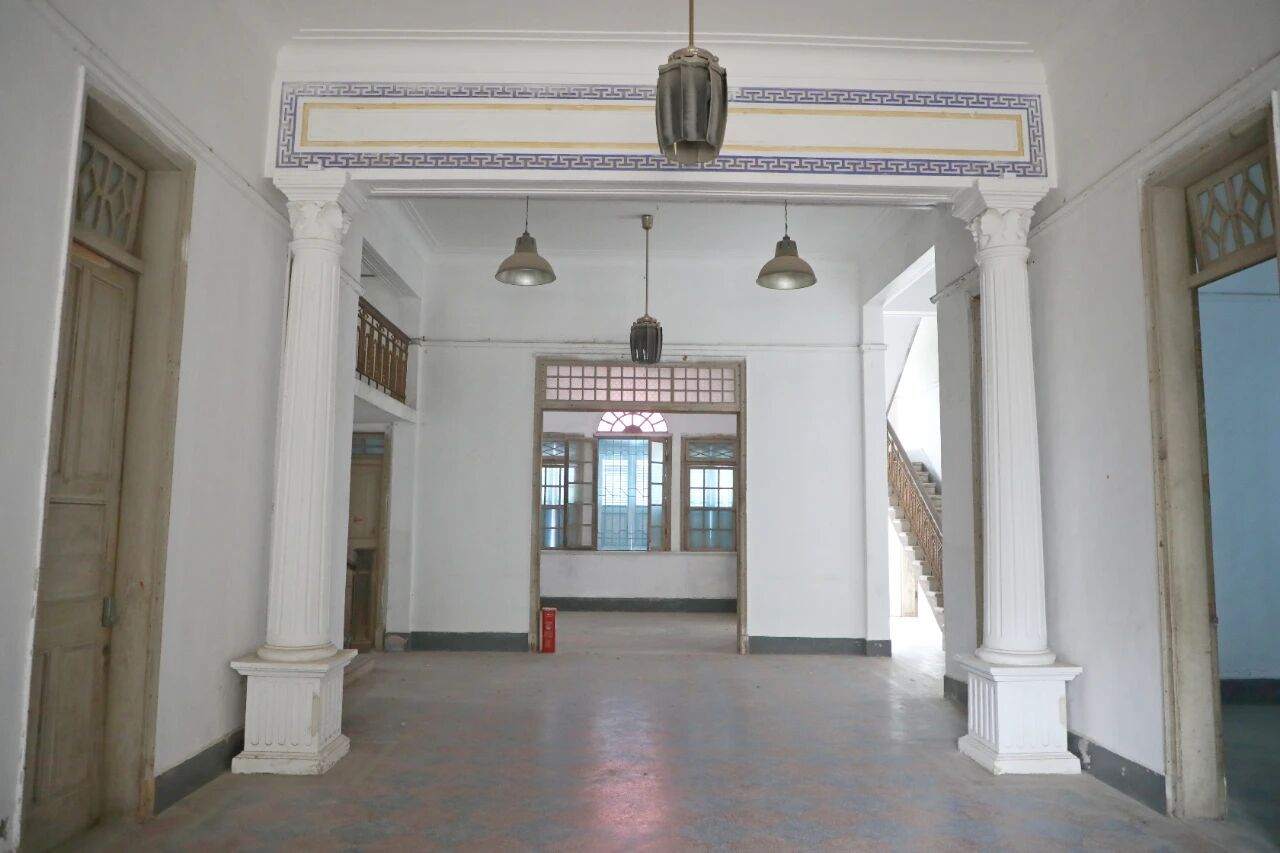 步入奇园,一栋豪华气派的欧式建筑便映入眼帘,庭院树木郁郁葱葱,青石地板错落有致,透着时光沉淀的韵味;主体建筑的十二根罗马柱直通顶楼,线条分明,上下刻有花纹,门窗刷上蓝色漆面,让整栋建筑充满异国风情。修缮后的奇园,褪去了斑驳沧桑,更添了一份历史的厚重感。